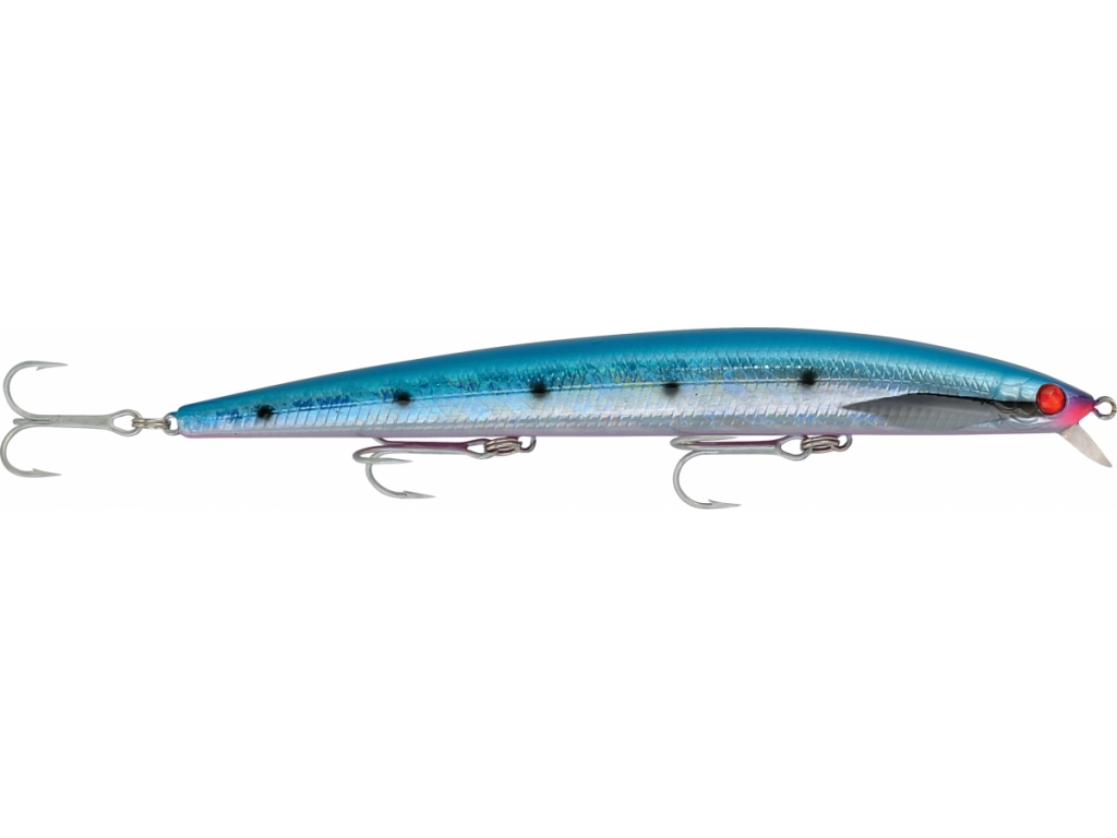 “MAGNETO – SLOW SINKING – una fantastica imitazione del pesce foraggio marino. Nonostante sia galleggiante, permette lanci estremamente lunghi grazie al peso mobile magnetico.