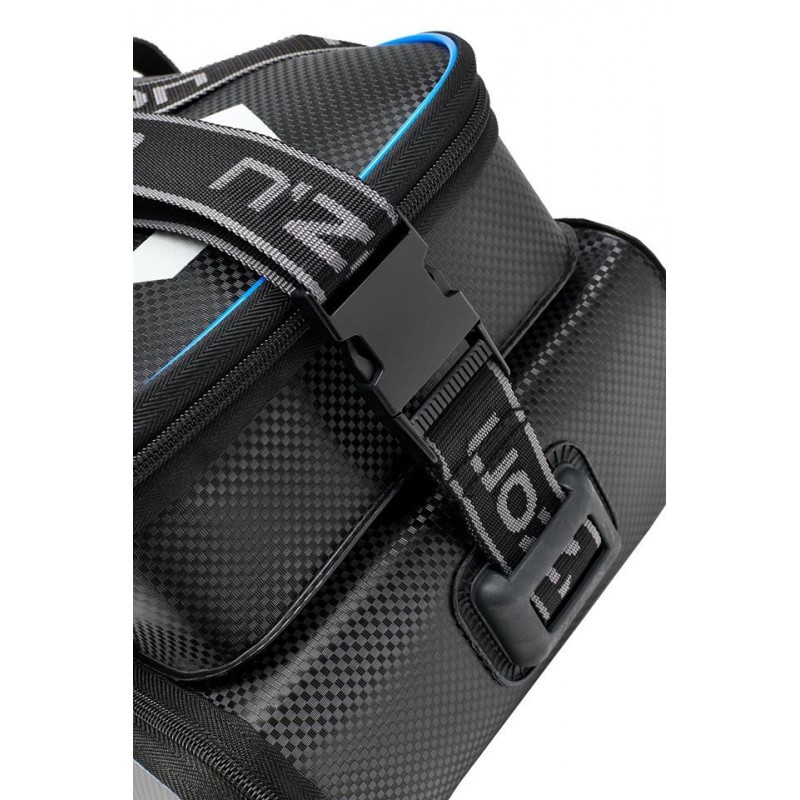 La borsa N’ZON EVA 2 Box Feeder Bag M presenta due scomparti principali. Il scomparto superiore è rimovibile tramite una chiusura a velcro e offre spazio per accessori voluminosi, mentre il scomparto inferiore è dotato di due pratiche scatole di plastica ideali per organizzare oggetti più piccoli. Le robuste maniglie e la tracolla imbottita garantiscono un trasporto confortevole anche a pieno carico.