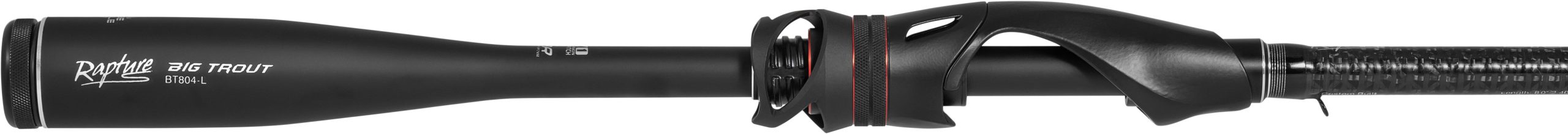 Gli anelli leggeri e rigidi con telaio K riducono l’attrito con la lenza grazie al sistema Rapture Smooth Coil Cast System. Le legature colorate non solo aggiungono stile, ma aiutano anche a identificare l’azione della canna. E non dimenticare il fantastico porta-mulinello che si adatta naturalmente al palmo della tua mano, completato da una vite di chiusura azionata da un elegante pomello in alluminio.