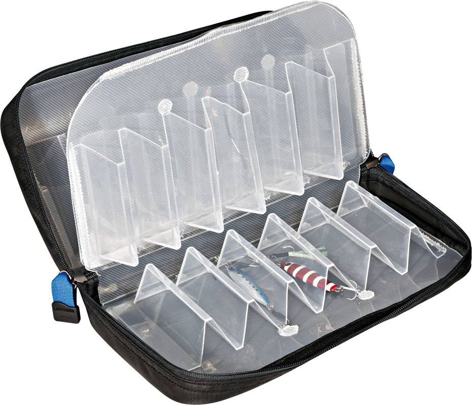 “Borsa da pesca con 4 scomparti rigidi progettati per contenere esche artificiali o esche Egi. Dotata di un totale di 24 celle a sezione triangolare. Sul retro sono presenti due passanti per poter essere agganciata ad una cintura.