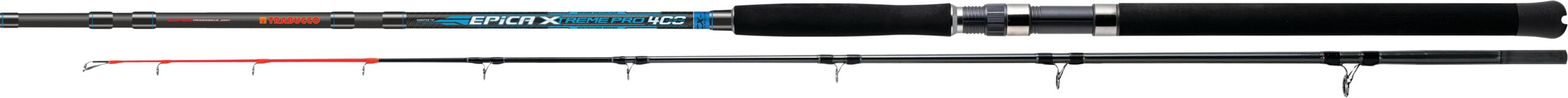 La nuova canna da bolentino Trabucco Epica Xtreme Pro è progettata con grezzi in 2 sezioni di uguale lunghezza realizzati in carbonio ad alto modulo CX-1. Il giunto super progressivo garantisce una resistenza estrema e conserva una curva perfetta anche alla massima flessione. La parte del calcio è rivestita esternamente con fasce di carbonio incrociate, mentre la cima sensibile in carbonio solido è protetta dal sistema di avvolgimento STS spiral Tip, verniciata in arancione fluo per un’alta visibilità. Gli anelli SiC sono fissati con legature ad alta tenuta, posizionati sul blank secondo il concetto Spiral Acid per sfruttare al meglio la potenza del grezzo. L’impugnatura in EVA ad alta densità con presa anteriore lunga assicura un controllo sicuro, mentre il portamulinello a vite in grafite con cappucci in acciaio rivestiti in gomma e l’estremità del tappo a crocera in gomma rigida arrotondata completano le caratteristiche di questa canna.