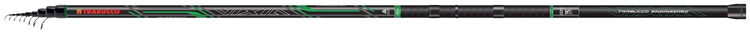 “La canna bolognese TRABUCCO VIXIA CROSS-X BOLO è una scelta eccellente per la pesca in ambienti acquatici dolci e salmastri. Realizzata con un blank in SHMR Carbon robusto e rinforzato con fasce di carbonio incrociate, questa canna ha un’azione progressiva ideale per gestire terminali fino a 15/18 grammi e diametri massimi di 0,16/0,20 mm. Gli anelli SiC a gambo medio e il tubetto scorrevole in carbonio contribuiscono all’ottimizzazione delle prestazioni, mentre l’impugnatura rivestita in gomma Sensi Touch offre comfort e controllo anche con le mani bagnate.