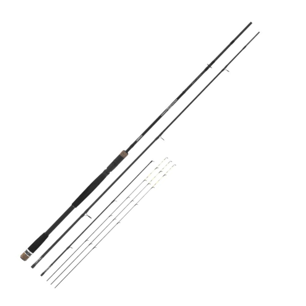 “Tubertini Concept X Feeder: Serie di canne feeder di alta qualità realizzate in carbonio di medio-alto modulo, rinforzate radialmente con doppio strato di carbonio ultra leggero. Caratterizzate da profili super slim, estrema leggerezza e grande reattività. Le Concept X sono dotate di tre vette Solid Carbon di diversa potenza da 3mm, anelli Minima ultra leggeri e portamulinello a vite di alta qualità. Una novità innovativa è la presenza di una ghiera rotante nella parte bassa del manico che permette al pescatore di selezionare facilmente la cima utilizzata durante le gare più concitate. Le finiture sono curate, con inserti di tessuto di carbonio sulla base, elementi R Grip e un’impugnatura elegante.